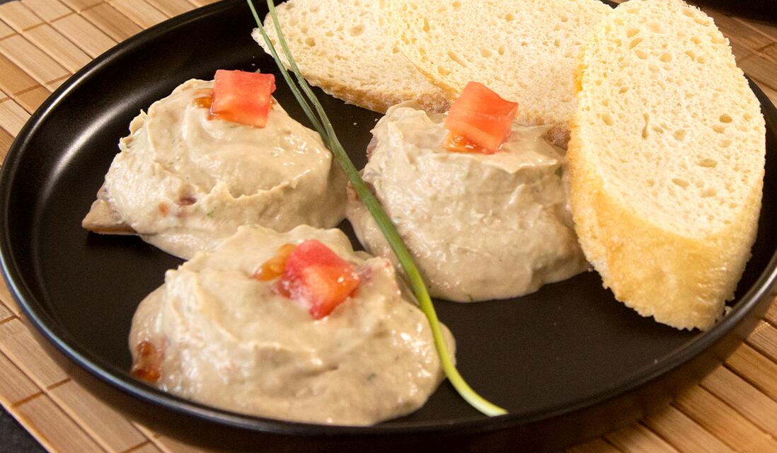 Пресният лук, почистеният от ципата домат и магданоза се нарязват на едро. Изцежда се сокът от 1 лимон. В дълбок съд се изсипва отцедената риба тон от консервите, лукът, магданозът и CREMIO за готвене. Овкусява се със сол и черен пипер. Всичко се пасира. Може да се добави постепенно и сока от 1 лимон.* В студена вода се потапя 1 лист желатин за 5 мин. и като омекне, се разтваря в 10 мл топла вода. Разтвореният желатин също се добавя постепенно с бъркане към сместа с рибата. Прибавят се и доматите. Оставя се да стегне в хладилник за 2 часа. Готовият мус се сервира студен на топки, като се гарнира с филийки от франзела и се аранжира с домат и див лук или маслини по желание.