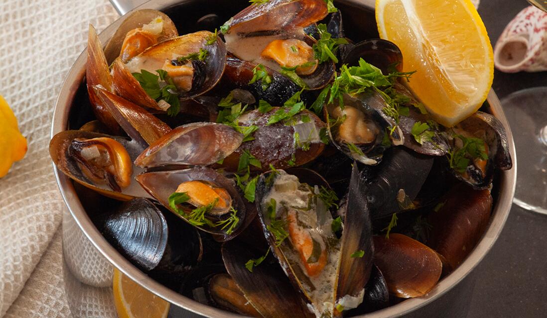 Add the mussels to the prepared sauce. Pour in 400 ml of warm water. Cover the pot with a lid, and after 5 minutes the mussels will be cooked. Remove them with a slotted spoon, and add the CREMIO cooking crème to the sauce. Sprinkle in half of the parsley and half of the dill. Season with salt and black pepper, and cook for another 1–2 minutes. Return the mussels to the pot and gently shake to evenly coat them with the sauce.* When serving, top each portion with the remaining parsley and dill.
