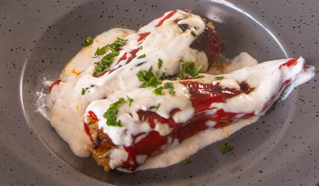 Pour the sauce over the cooked peppers and return to the oven for 2 minutes. Serve sprinkled with parsley.