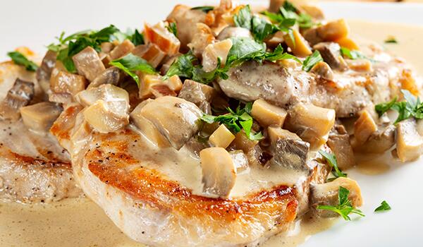 Котлетите се овкусяват с подправките и се запържват до златисто в предварително загрята мазнина. Гъбите, лукът и чесънът се добавят и се разбъркват за 2-3 мин. Всичко това се залива с Cremio за готвене. Намалява се температурата, тиганът се покрива и така остава да къкри 20-30 мин. Котлетите стават меки и сочни – готови за консумация.