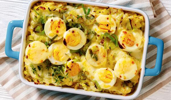 Кашкавалът се нарязва. Яйцата се белят и нарязват на половинки, чушките се почистват и нарязват на ленти, а доматите - на кръгчета. В загрят тикан се запържват чушките до омекване, след което се нареждат доматите и върху тях яйцата. Прибавя се Cremio за готвене и се овкусява със сол и черен пипер. Ястието се поръсва обилно с MyDay кашкавал и се запича за 4 мин. с похлупен капак. Преди сервиране се поръсва с наситнен магданоз.